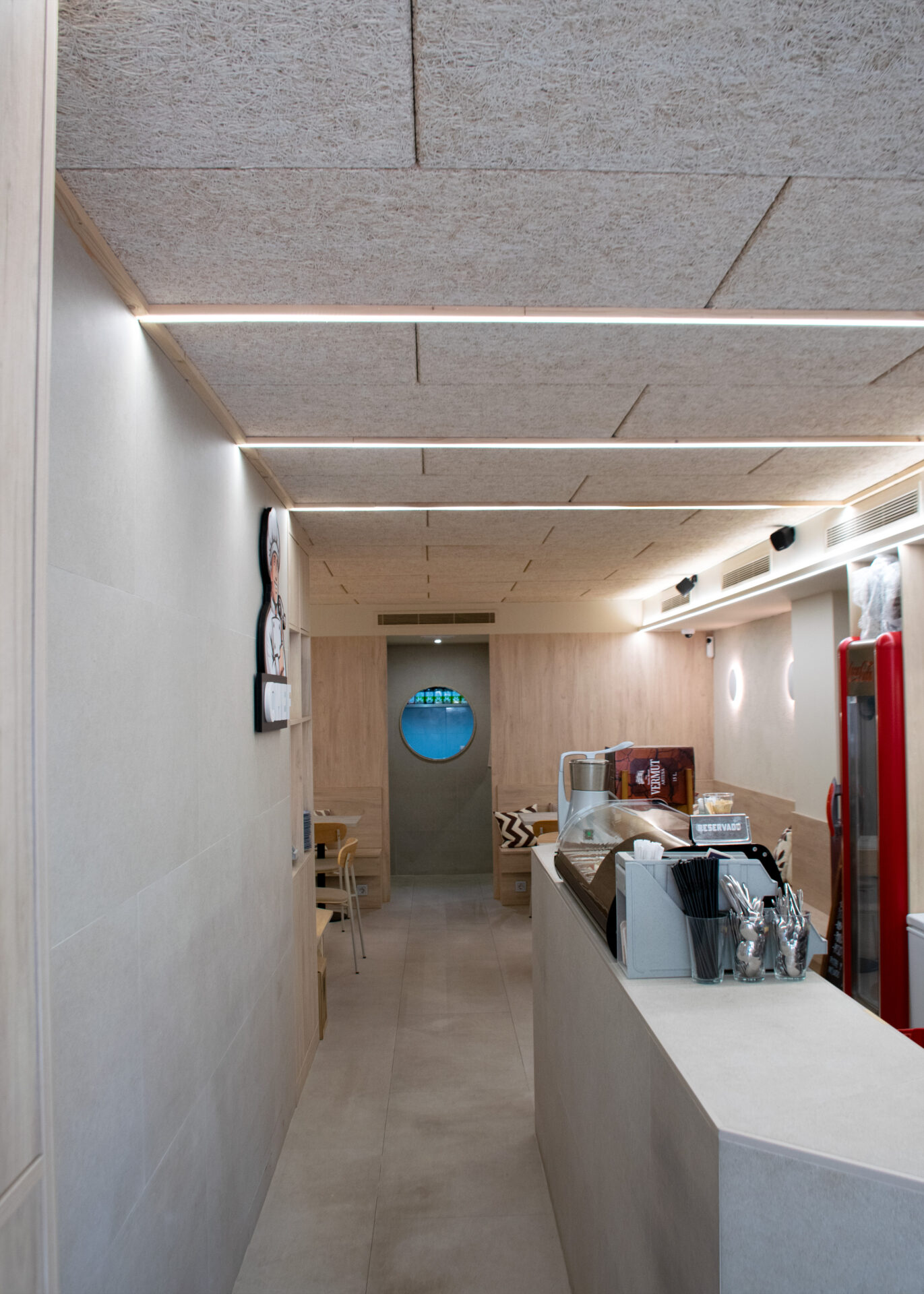 El resultado es un lugar renovado, que conserva su esencia como punto de encuentro de barrio pero ofrece una identidad fresca y contemporánea. Un bar cálido y relajado, donde materiales, luz y mobiliario a medida construyen una atmósfera cercana y hospitalaria.
