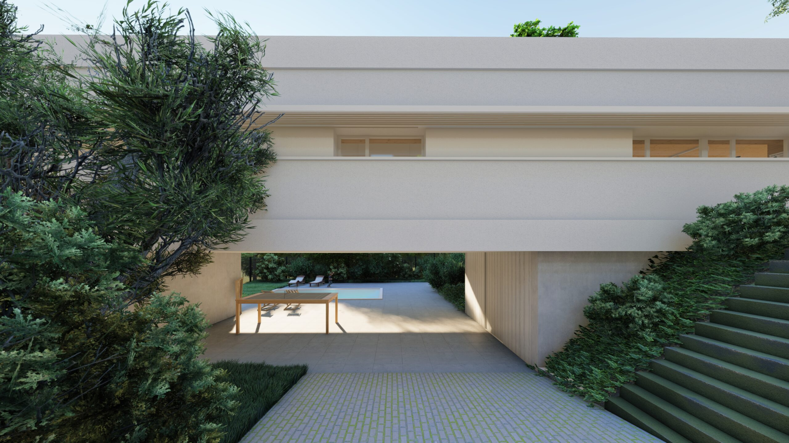 Este proyecto ha sido desarrollado en colaboración con el arquitecto Mario Cuevas Medel, de MACUM Arquitectura, aunando esfuerzos para dar respuesta a la complejidad topográfica del terreno mediante una propuesta clara, serena y perfectamente integrada.