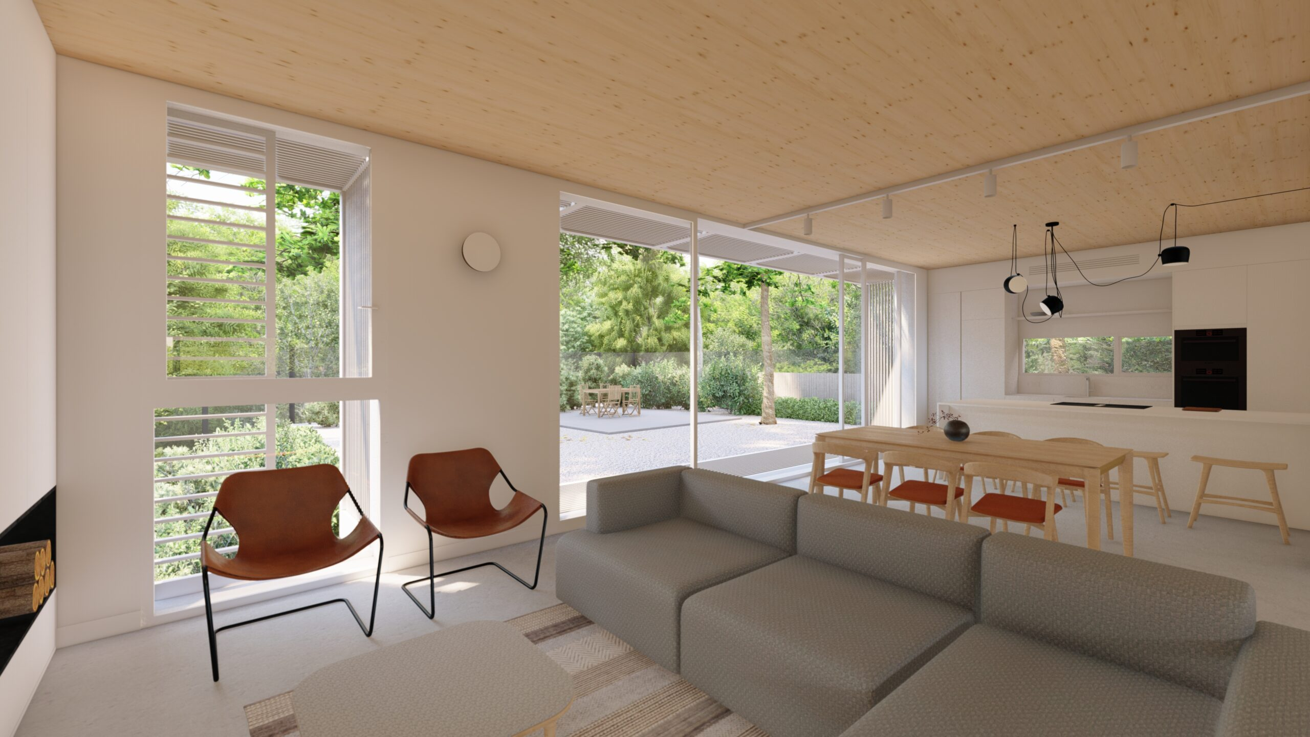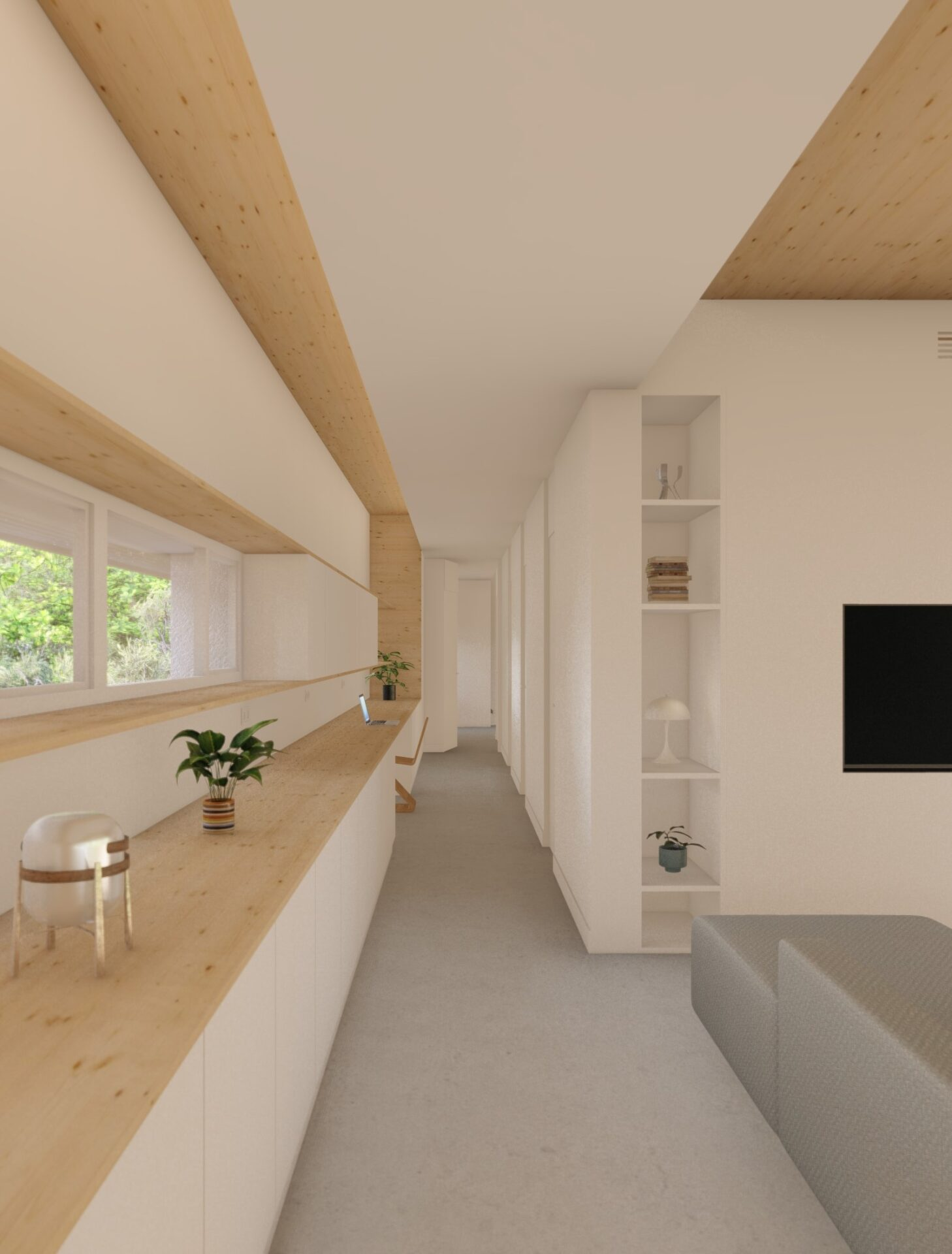 La arquitectura de Faig 11 se caracteriza por la simplicidad formal, la claridad estructural y el uso de materiales que transmiten calidez y serenidad. La madera, la luz natural y la transparencia de los cerramientos enmarcan las vistas y refuerzan la conexión constante con la naturaleza circundante.